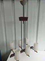 Dit 6 lichtpunten tellende luster kan op 2 hoogtes gemonteerd worden: 65 en 95 cm.
