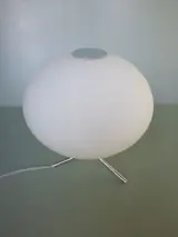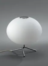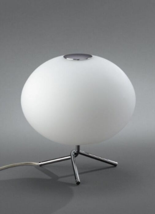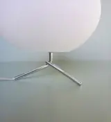 Fraaie mushroom tripod tafellamp met matglazen ronde bolvormige kap op metaal chroom voet.Leuke speelse vormgeving en passend in elk interieur.