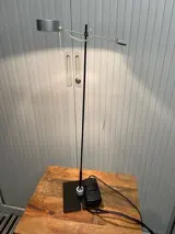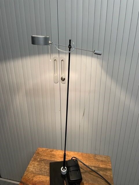 De zwarte desktop heeft een vloerplaat van 13x13cm en is 60cm hoog. De kop heeft een totale lengte van 23cm. De lampkop is van mat chroom. De arm is draaibaar en kan tot een hoek van ongeveer 45 graden gebogen worden (zie foto's).