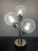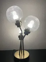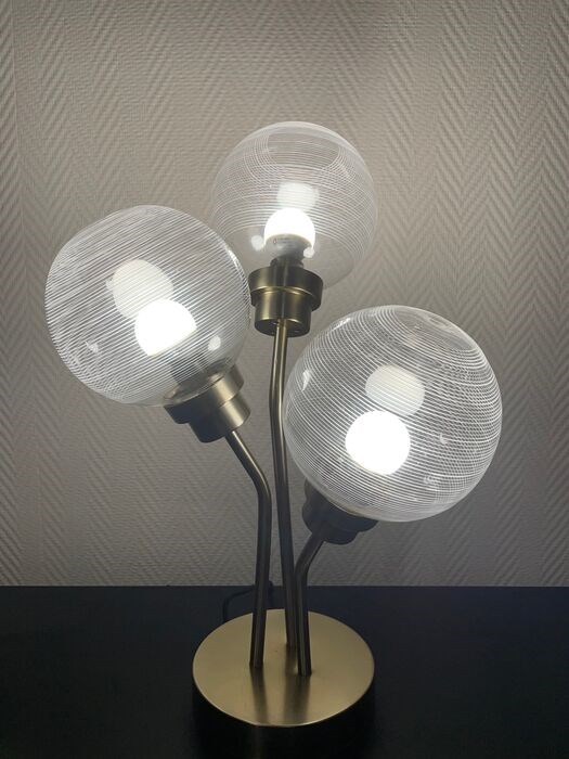 Schitterende Design Lamp in goud messing met drie geblazen glazen bollen