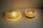 Twee plafondlampen in gestructureerd glas uit het midden van de eeuw van Odreco Denemarken. ca. 1960.