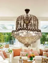 Oogverblindende kristallen kroonluchter, bedekt met prachtige lichtgekleurde kristallen kralen, geeft een luxueus accent aan deze kroonluchter, versierd met kristallen kralen. De versiering van zijn bronzen kroon is gemaakt met prachtige motieven en kristallen. Het bereikt de meest intense schitteringen in de omgeving, het geeft een waardevol accent aan uw decoratie dankzij de tekeningen en kleuren die het afgeeft. Het is schoon, herzien en met zijn strakke ramen. Het is een veelzijdige en verfijnde lamp die de schittering en kracht vergroot door de samenstelling van een selectie van grote gefacetteerde achthoekige kristalkralen, gefacetteerde prismakristallen, afgewerkt in een cascade van prisma's en een kristal bloemendetail.