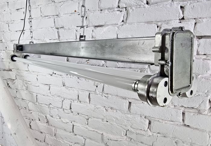 Poolse industriële lamp omgebouwd tot 2 T8 LED, lamp 120mm.