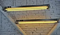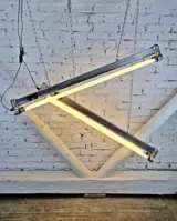 Twee Poolse industriële lampen omgebouwd tot 2 T8 LED, bol 120cm.