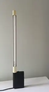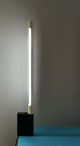De lamp bestaat uit een metalen basis met een plastic cilindervormige behuizing van de neonbuis die kan worden gedraaid. Hiermee kan zowel gericht als indirect licht worden verkregen.De lamp is gemerkt en op de basis voorzien van een aan-en uit drukknop.