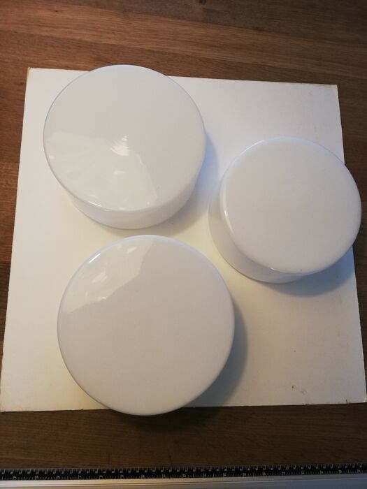 3 rzb dkn plafondlampen Rudolf Zimmermann Bamberg rond. Art Deco, Bauhaus stijl lampen. Vintage jaren 60. Opaalglas.