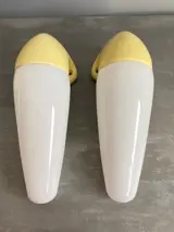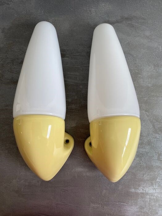 Zachtgeel geglazuurd porselein gecombineerd met kegelvormig melkwit opaline glas is gewoon een prachtig Scandinavisch midcentury-ontwerp van Sigvard Bernadotte voor IFÖ, Zweden, jaren 60.