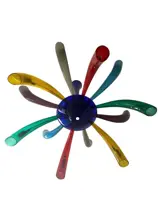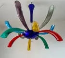 Op vuurwerk geïnspireerde structuur met 12 lampjes, gemaakt van geblazen Murano-glas door de firma Sylcom. De gekleurde armen zijn verstelbaar, naar boven, naar beneden of afwisselend zoals op de foto