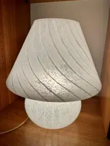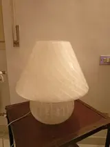 Grote paddestoellamp, in gestreept glanzend peguloso glas.