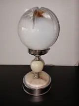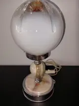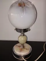 Nachttafel lamp.Art Deco stijl. Metaal met marmer voet. Glazen bol is vanglas met een diameter 15 cm.