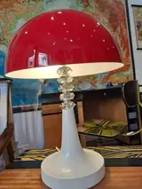 Uitzonderlijk mooie volledig gerestaureerde paddestoel tafellamp uit 1960. Opnieuw bedraad, met 2 fittingen, geeft dus een prachtig licht.