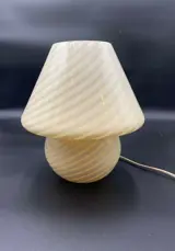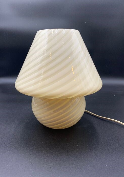 Prachtige paddenstoel in creme kleurig Murano glas met een decoratie genaamd "swirl". De decoratie is een integraal onderdeel van het vakmanschap, niet geverfd, maar vooral door het reliëfeffect dat ook bij aanraking wordt gegeven, kunt u de kwaliteit en vaardigheid van de Murano-glasmeesters waarderen.