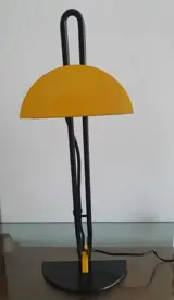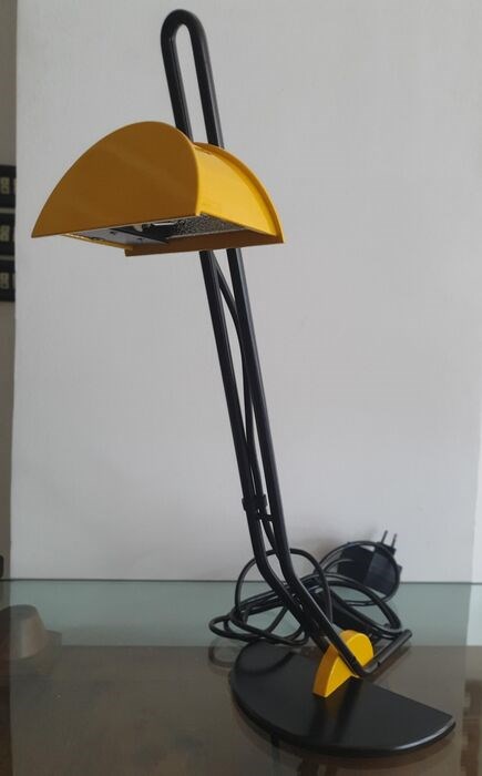 Tafellamp, erg populair in de jaren 80. Artikel afkomstig van een tentoonstelling en volledig functioneel met lichtintensiteitsregelaar. Verstelbare diffusor. Halogeenlamp aanwezig.