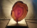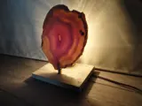 Mooie designlamp gemaakt uit Agaat , travertin en messing .De lamp heeft een klassiek soket waar eventueel een LED lamp kan ingedraaid worden .