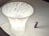 Het glas in verschillende wittinten met luchtinsluitingen ziet er mooi uit en schermt comfortabel het licht af, maar is tegelijkertijd helder.