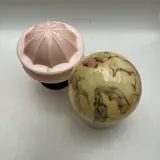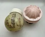 Kleuren : mooie warme tinten ,, pastel crème gemarmerd, en zacht roze, en naar mijn mening zeldzaam! van vormgeving !