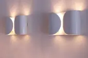 De lampen zijn gemaakt van wit gelakt staal waarbij het licht boven en onder wordt uitgestraald.