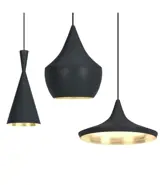 De Tom Dixon Beat Cluster combineert op harmonieuze wijze drie verschillende hanglampen.