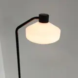 Staande lamp in zwart gelakt staal en wit opaal glas