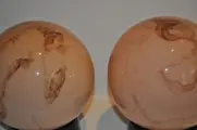 2 tafellampjes in goede staat, de glazen kapjes zijn keurig. In het onderstel is een uitsparing gemaakt voor de aansluiting.