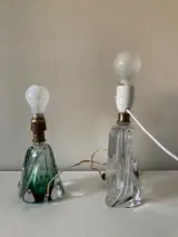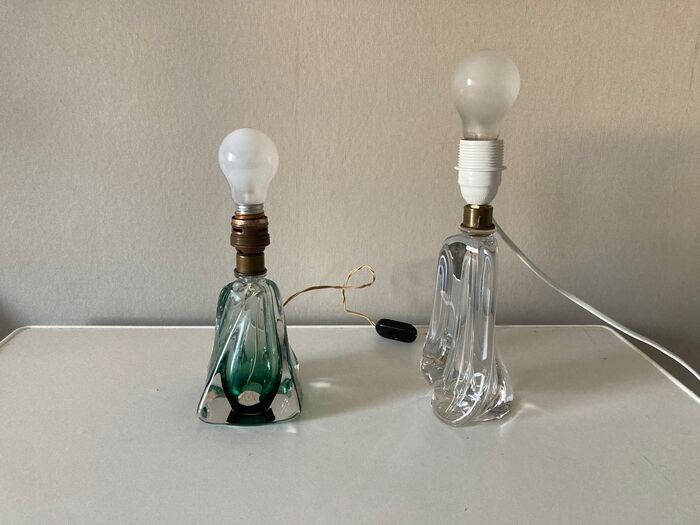 2 stuks, Val Saint Lambert kristallen helder gedraaide tafellamp of bureaulamp.