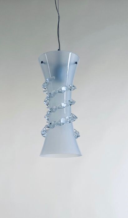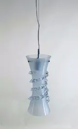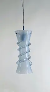 Deze prachtige hanglamp van Murano glas is voorzien van een geheel vernieuwd gegalvaniseerd ijzeren armatuur met componenten die voldoen aan de wettelijke normen. E27 lampfitting. Deze lamp is met de hand gemaakt door de meester glasblazers van Murano: let op de handgetekende morrisa in amberkleur. Een uniek meesterwerk. Het heeft de perfecte vorm voor keuken, slaapkamer of hal. Het is ook de perfecte lamp voor een Bed & Breakfast