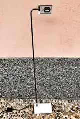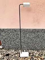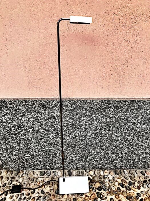Schitterende vloerlamp met kantelbare steel en verstelbare lamphouder.