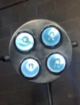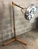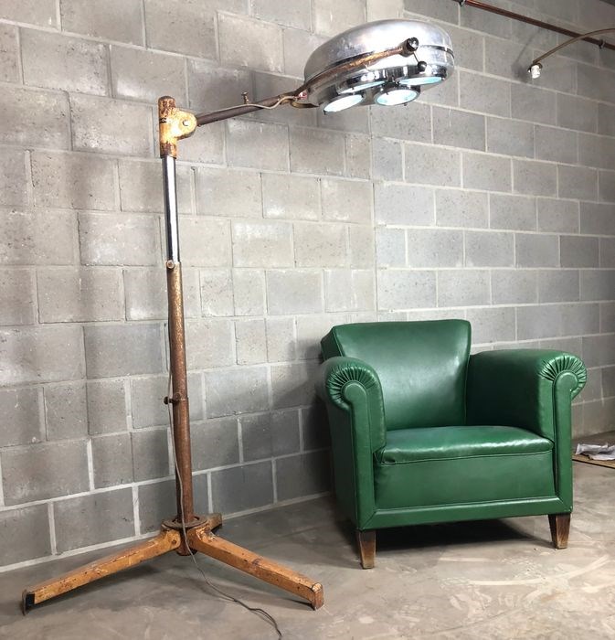 Chirurgische lamp van gepolijst staal. Werkt perfect en verspreidt een zacht blauwachtig licht. Originele decoratie voor een loft of industriële stijl of een zeldzaam verzamelobject voor liefhebbers van vintage objecten. Vervaardigd door Original Hanau in Duitsland in de jaren 50.