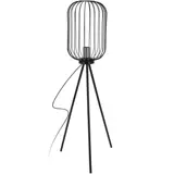 De lampenkap en poten van deze vloerlamp zijn geheel van zwart metaal.