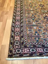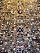 Ambachtelijk tapijt, plantaardige kleuren met zeer fijne knopen. Vloerkleed met geometrische dessins, design, in perfecte staat