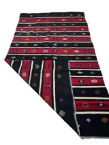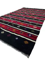 Deze unieke handgeweven vintage kelim is gemaakt in de jaren 70-80 door nomaden in het dorp Canakkale. Voordat ze met het weven begon, was de wever haar schapen aan het scheren, de wol aan het schoonmaken, kammen en spinnen om het beste garen van kilim te hebben. Tapijten weven is een traditie in Turkije en elk dorp en elke stam heeft een andere ontwerp- en weeftraditie. Dit vloerkleed heeft een karakteristieke combinatie van kleuren en design.