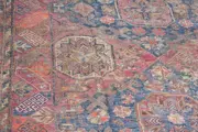A fantastic and genuine early 19th century Soumack , Sumak, Sumac flat weave rug from region of old Azerbaijan. Measuring 310 x 240 cm ( 10 x 7.8 ft ) , this rare piece has all the attributes belonging to the antique Soumak pieces. Very decorative rug it still has its beautiful faded colours and although has few defects like holes, fraying and wear all over, but these do not diminish its past glory. I have carefully washed and cleaned it but needs some restoration. For those rug enthusiast who wants to own a rug belonging to almost two hundred years old, this piece with its fair price would be a good selection. Similar Soumak size rug with the better condition worth thousands of pounds. Please check the condition and ask me any questions you have before buying, as the piece is sold as seen.