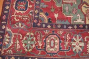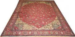 Een indrukwekkend handgemaakt wollen Turks Konya vloerkleed Zuid-Anatolië circa 1880 van 490 x 340 cm (16 x 11 ft). Mooi helemaal over bloemengebied in diepe antieke rode achtergrond die hoeken in bleke mosterd en groene kleuren hebben. Konya-tapijten met dezelfde leeftijd zijn normaal gesproken extreem versleten of hebben veel gebreken, maar dit tapijt heeft de leeftijd getrotseerd en is in goede staat gebleven met enkele plaatselijke slijtage die overeenkomt met de leeftijd. Het ontwerp en de kleuren hebben veel overeenkomsten met Perzische Heriz-tapijten, maar het weefsel heeft meer Turkse knopen en is een oud stuk uit de regio Anatolië. het is professioneel gereinigd en gewassen, beide uiteinden zijn vastgezet met weinig aanrakingen om ervoor te zorgen dat het vloerkleed klaar is voor zijn nieuwe plek.