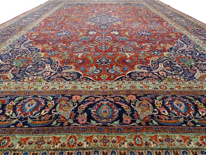 Dit gebruikte tapijt is mooier en karaktervoller geworden door het natuurlijke verouderingsproces. Gewassen, gereinigd en gerestaureerd waar nodig. Kortom, verduurzaamd en klaar voor een nieuw leven. Deze zeer exclusieve & antieke Keshan is in een voor zijn leeftijd goede staat. De sporen van gebruik, die horen bij de leeftijd van dit kleed, dragen bij aan het karakter en maken het kleed daarmee mooier. Voor de liefhebber/kenner.