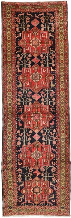 Oosters tapijt, handgeknoopt, oud Azerbeidzjaans tapijt, 345x110cm