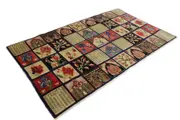 Bachtiar Teppiche besthen aus fester en kräftiger Wolle. Denn die Teppiche – benannt nach den Nomaden des Stammes Bachtiari, die im Sagrosgebirge nahe der Stadt Isfahan leben – gehören zu den robuuststen aller Perserteppiche. Geknüpft werden ze dabei aus dicker Wolle, die hun Verschleiß aandacht geven. Het is niet zo goed en we zijn wie de Korkwolle andere Perserteppiche, jedoch hoed sie een duidelijke Vorteil in hun weerstand tegen alle mogelijke Belastungen. Vielerorts werden Bachtiar-Teppiche mit Motiven gefertigt, die an Gärten erinnern. Als een man een Teppiche der Bachtiari vindt, moet Muster sich jenen aus der nahegelegenen Isfahan-Teppich region ähneln.