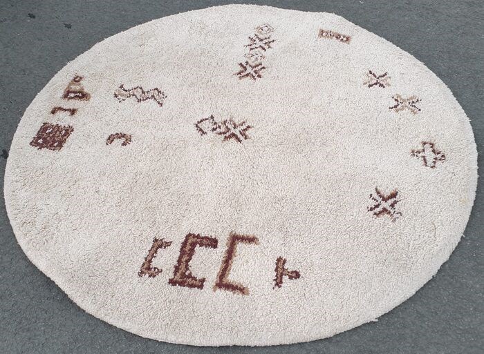 Er wordt een prachtig rond Berbertapijt uit Marokko geveild.