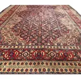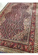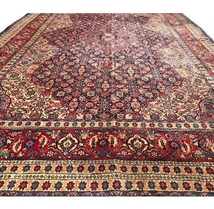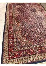 Mooie vintage kostbare origineel fijn handgeknoopt perzisch tapijt Bidjar oosters vloerkleed. Materiaal: gemaakt van wol. Kleur: donkerrood met donkerblauw en beige klassiek / antieke bloemenmotief / patroon. Herkomst: Perzië / India. Conditie: het tapijt is verkleurd door de leeftijd(zie foto) maar voor de rest het zit echt mooi uit als vintage / retro vloerkleed. Maat: L 300 x B 190 cm. Dit tapijt wordt afgeleverd met certificaat van echtheid.