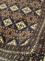 Dit is een handgeknoopt Oosters tapijt, gemaakt van duurzame, natuurlijke materialen. De manier van knopen en diversiteit in patronen maken dit kleed tot een unicum en benadrukken het authentieke en ambachtelijke karakter.