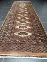 Een handgeknoopt oosters tapijt Bukhara wordt aangeboden
