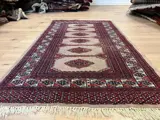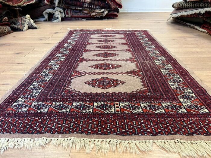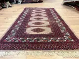 een handgeknoopt oosters tapijt Bukhara wordt aangeboden.