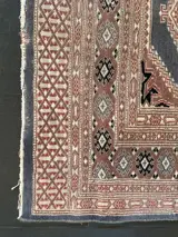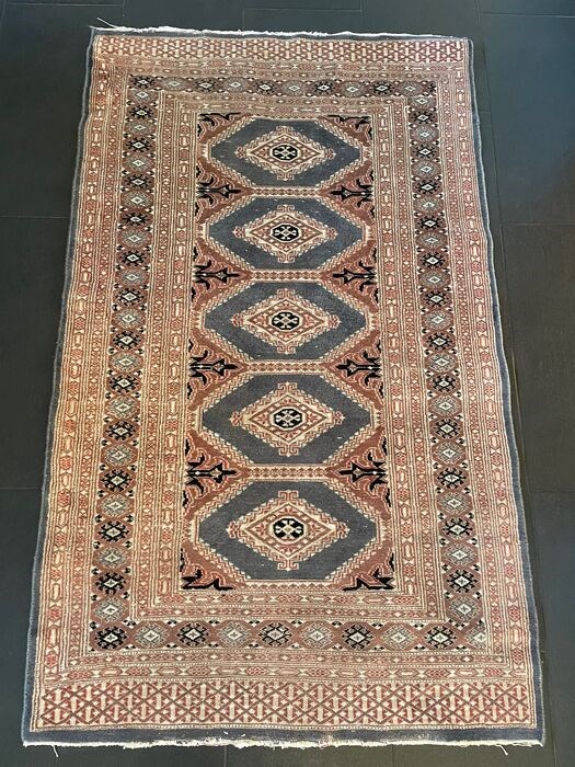 Er wordt een oude, goed bewaarde Bukhara aangeboden. Het is met de hand geknoopt in Pakistan en meet 160x95cm.