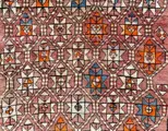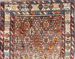 Herkomst en beschrijving: Kaukasisch Dagestan tapijt. Zeer mooie en zachte wol. Binnenveld met een veelheid aan sterren in een rooster. Hoofdrand met zeshoekige ontwerpen en secundaire randen met traditionele Kaukasische diagonalen. Als een bijzonderheid in de ontwerpen presenteert dit tapijt een paar amandelen ("lawz"), een personage en een geweven dadel.
