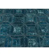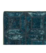 Een wollen vloerkleed bestaande uit stukjes handgeknoopte en gerecyclede vloerkleden. Het behoudt de originele ontwerpen onder zijn nieuwe look en kleur. Geïmporteerd uit Iran tussen 2010 en 2015.