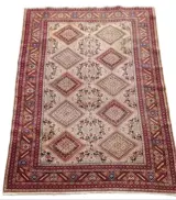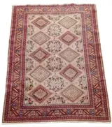 Prachtig Kaukasisch tapijt van Derbent geknoopt in Dagestan in de kustplaats Derbent, gelegen tussen de Kaspische Zee en het noordoostelijke Kaukasusgebergte en in de omgeving. Klassieke patroonplant, met als achtergrondkleur het kenmerkende beige. Houd er rekening mee dat de foto's buiten zijn gemaakt en dat de kleurtint verandert en aan de ene kant lichter of donkerder kan lijken. Plantaardige kleuren en geknoopt in het midden van de twintigste eeuw, de schering en inslag zijn van katoen en fleece van wol. Vorige waren wol op wol. Zeer fijne en compacte knoop, het tapijt is gezond, zoals te zien op de foto, het heeft een klein plekje waar het hersteld zou kunnen worden. 220x143 cm.