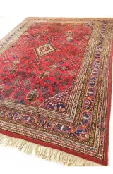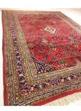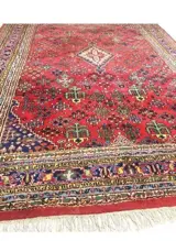 Mooie vintage grote Oosters vloerkleed origineel fraaie handgeknoopt djosheghan Perzisch tapijt. Materiaal: gemaakt van wol. Kleur: rood met donkerblauw, groen klassiek / antieke patroon. Herkomst: Perzië / Iran. Leeftijd ca.40 jaar oud. Maat: L 350 x B 250 cm. Deze tapijt wordt afgeleverd met certificaat van echtheid.