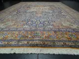 De stad Qom ligt op een droge rivierbedding ongeveer 150 km ten zuiden van Teheran. Het is de op één na heiligste stad van het land en de zetel van een theologisch opleidingscentrum. De zus van de achtste imam is begraven in een prachtig mausoleum. Met de hand geknoopt van 100% fijnste kurkwol, hecht de knoopmeester veel waarde aan precisie en de allerbeste materialen. De harmonie van het hele kleurenbeeld verraadt het schrijven van een meesterhand.