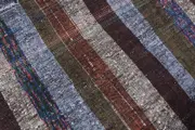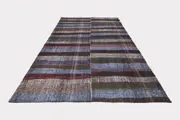 Pala Kelim vloerkleed. Een eenvoudig, oud tribaal vloerkleed, gemaakt voor alledaags gebruik, met een levendig, verrassend kleurenpalet. De weeftechniek en het gebruik van gemengde materialen van het vloerkleed met een zeer interessante textuur.