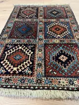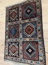 een handgeknoopt Perzisch tapijt Yalameh wordt aangeboden.