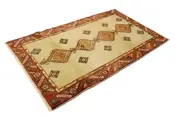 Gabbeh-Teppiche werden von den Nomaden des Stammes der Ghaschghai in der Farsprovinz of Iran geknüpft. Grondmateriaal is afkomstig van met de hand gesponnen Wolle, welche im Anschluss mit natürlichen Farben gefärbt wird, die aus Pflanzen gewonnen wird. Gabbeh heißt auf persisch roh of auch natürlich. Die perfecte Bezeichnung für diese Nomadenteppiche, deren Formsprache auf das Wesentliche reduziert ist. Vaak vinden mensen een eenvoudig Tieroder Pflanzenmotiv, zoals Kamele of Bäume auf dem Teppich. Dit motief is afkomstig van alle geïnspireerde inspiratiebronnen van Nomaden.